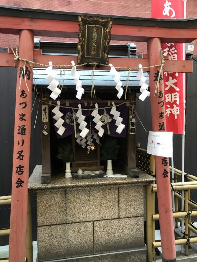 銀座八丁神社めぐりの対象神社になっていたので訪れました。松屋の屋上の一角にある神社です。松屋の屋上はそれほど広くないですが、そこに参拝まちの人の列ができていました。また、屋上まで行くエレベーターも混雑していてなかなか来ませんでした。