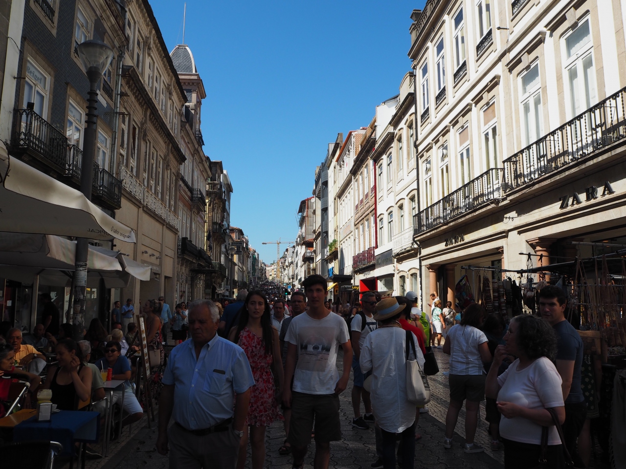 ポルトの目抜き通りで歩行者天国になっていました。通りの両側にはショップやカフェが立ち並ぶお買い物天国で、人通りもおおくかなり混雑していました。外壁のアズレージョで有名なアルマス聖堂もこの通り沿いにありました。
