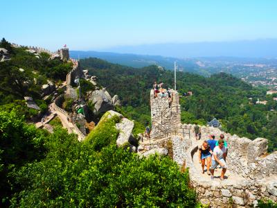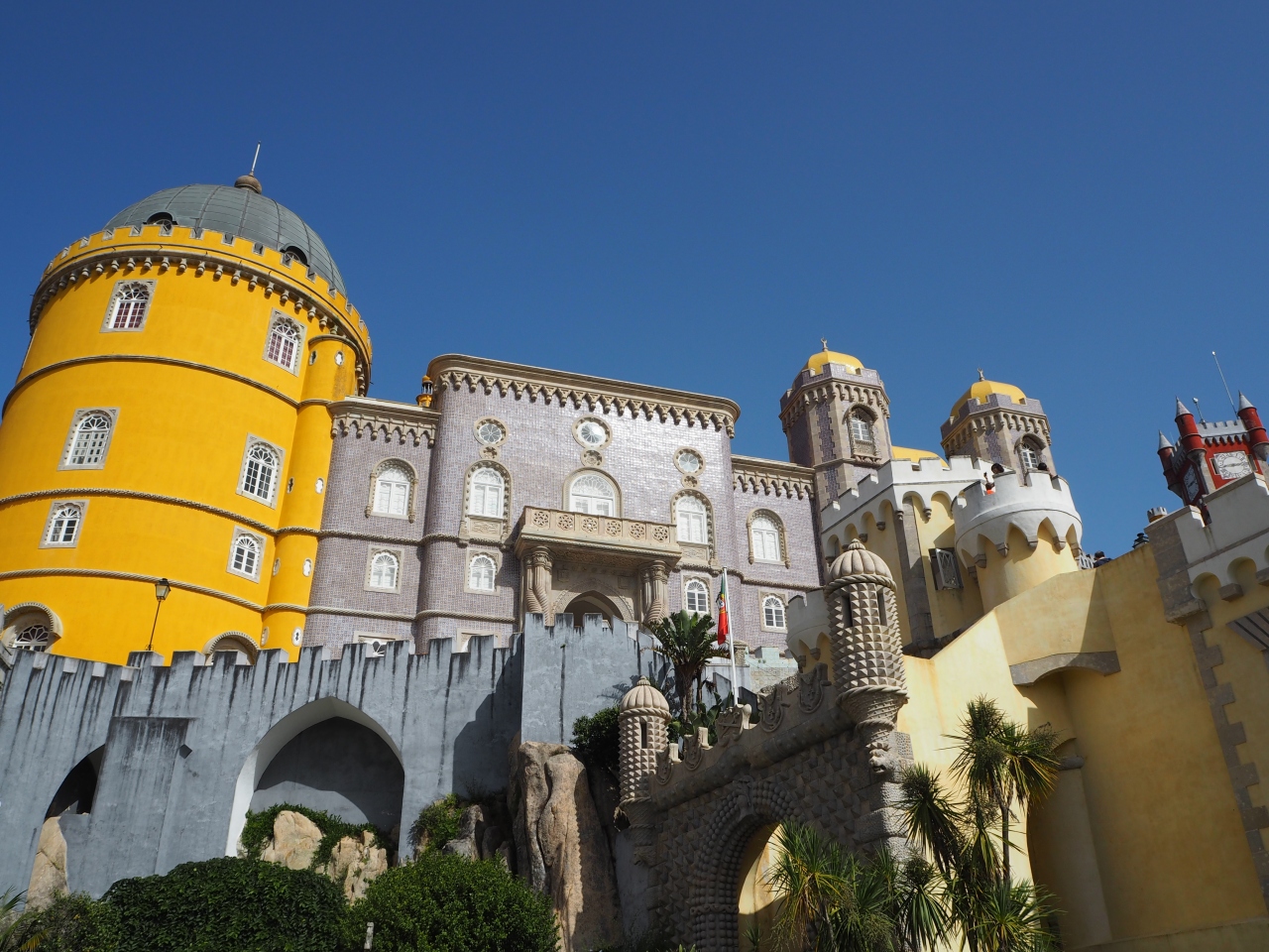 ペーナ宮殿やムーアの城塞など山の中にあるスポットもありバスを使って巡る感じです。リスボンから1デイパスを購入していきました。シントラの周遊バスは非常に混雑するので、まずは一番高台のペーナ宮殿までいき、ムーアの城塞とセットで観光した後、バスで王宮まで下り、王宮から駅は歩いてしまうのがよいと思います。