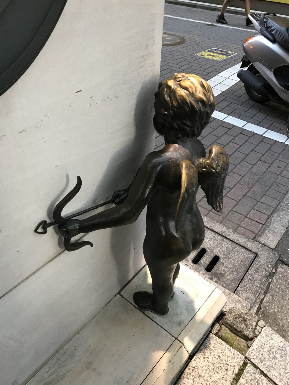 数寄屋橋交差点と中央通りの和光の時計台がある交差点のちょうど中間あたりにある建物の角にいるキューピッドの像です。結構小さな像なので見落としてしまいそうな感じですが、外国人観光客が写真撮影している姿をたまに見かけます。