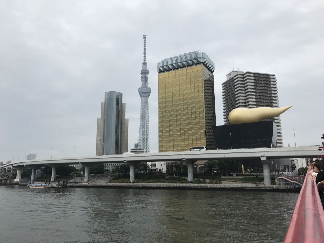 東武や東京メトロの銀座駅からでてすぐ近くにある赤い橋である吾妻橋の対岸にある建物です。金色の巨大なオブジェが目を引く建物で、浅草を紹介する写真でもよく目にする建物だと思います。スカイツリーと同時に見ることができるのでちょうどよい記念撮影スポットでした。