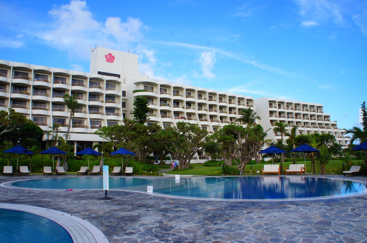 美しいビーチとして有名な与那覇前浜に面しているリゾートホテルです。ホテル周辺のビーチは人も少なくて静かに楽しめました。お部屋にはバルコニーがあってそこからプールとその向こうに海が見えて最高の景色でした。