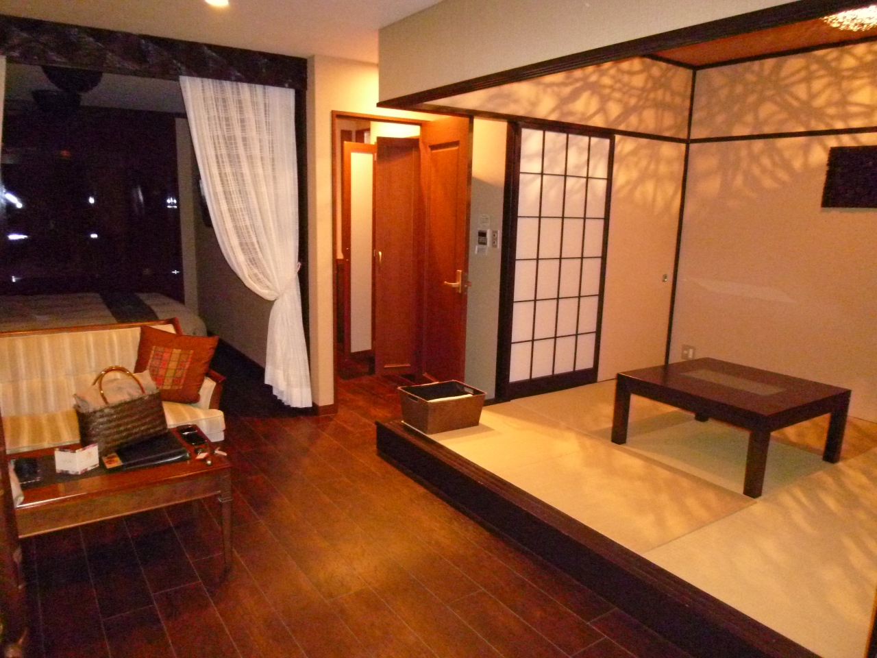 伊豆にあるホテルで、和洋室の作りになっていて、畳スペースとリビング、ベッドスペースがあって1部屋の広さがとても広かったです。お部屋にもお風呂がありますが、大浴場もあるので足を延ばしてのんびりお湯につかることができました。