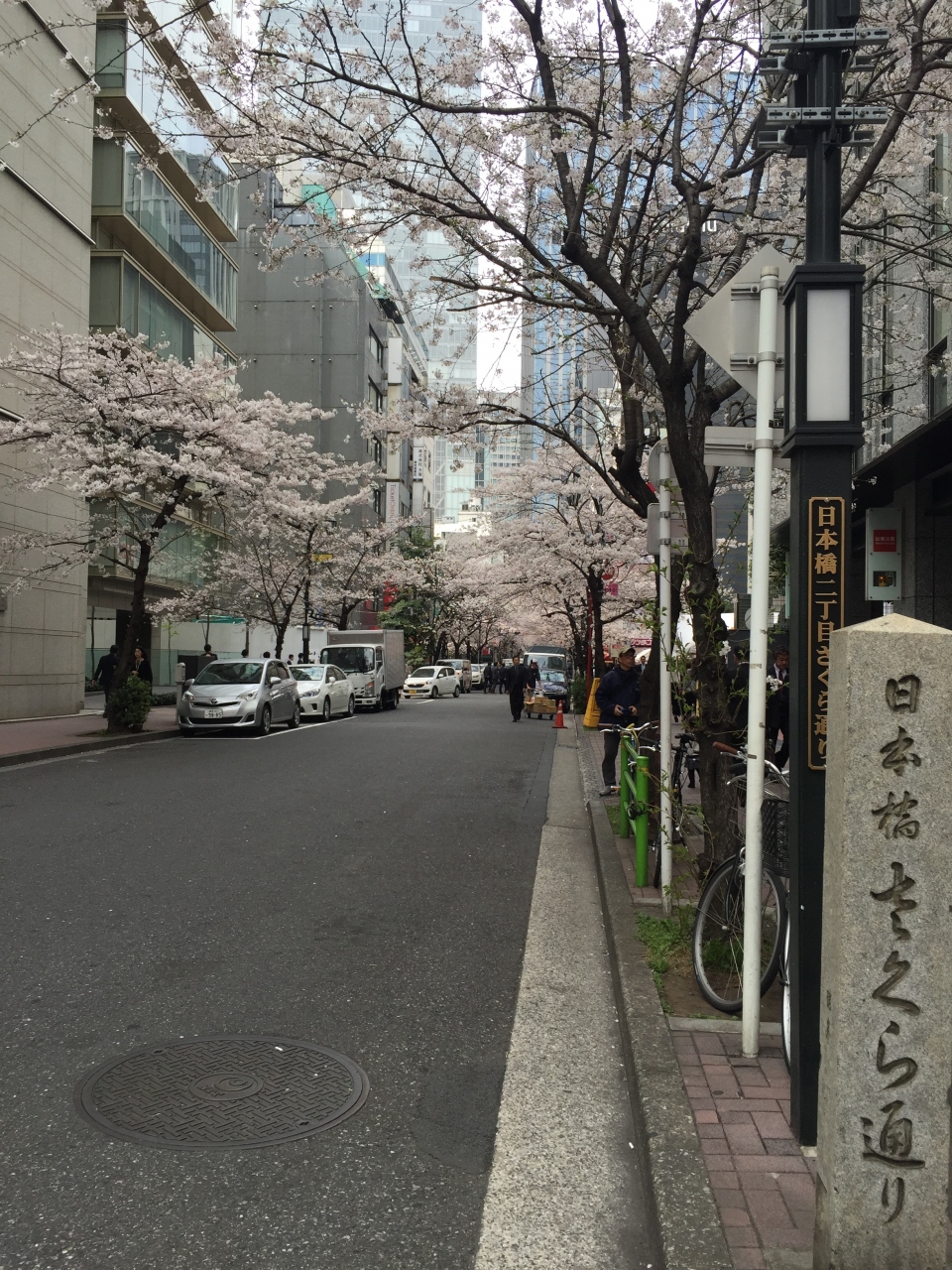 東京駅の八重洲方面にある通りのひとつです。普段は普通の通りで、通り沿いにはカフェや飲食店などが並んでいますが、桜の時期になると通りの両側に植えられている桜の木が満開になって、桜のピンクのトンネルができてとてもきれいです。