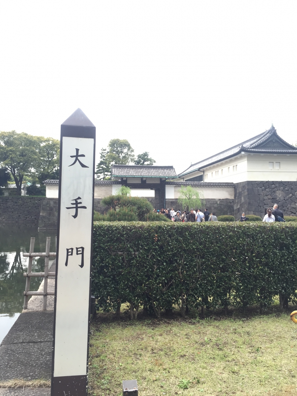 皇居東御苑への入り口なっている門です。お濠にかかる大手門橋を通って敷地内に入ると、皇居東御苑を見学するための受付がありました。大手門は江戸時代のときからも江戸城への玄関口となっていたそうで、大名たちはここを通って江戸城へ入っていったのだそうです。