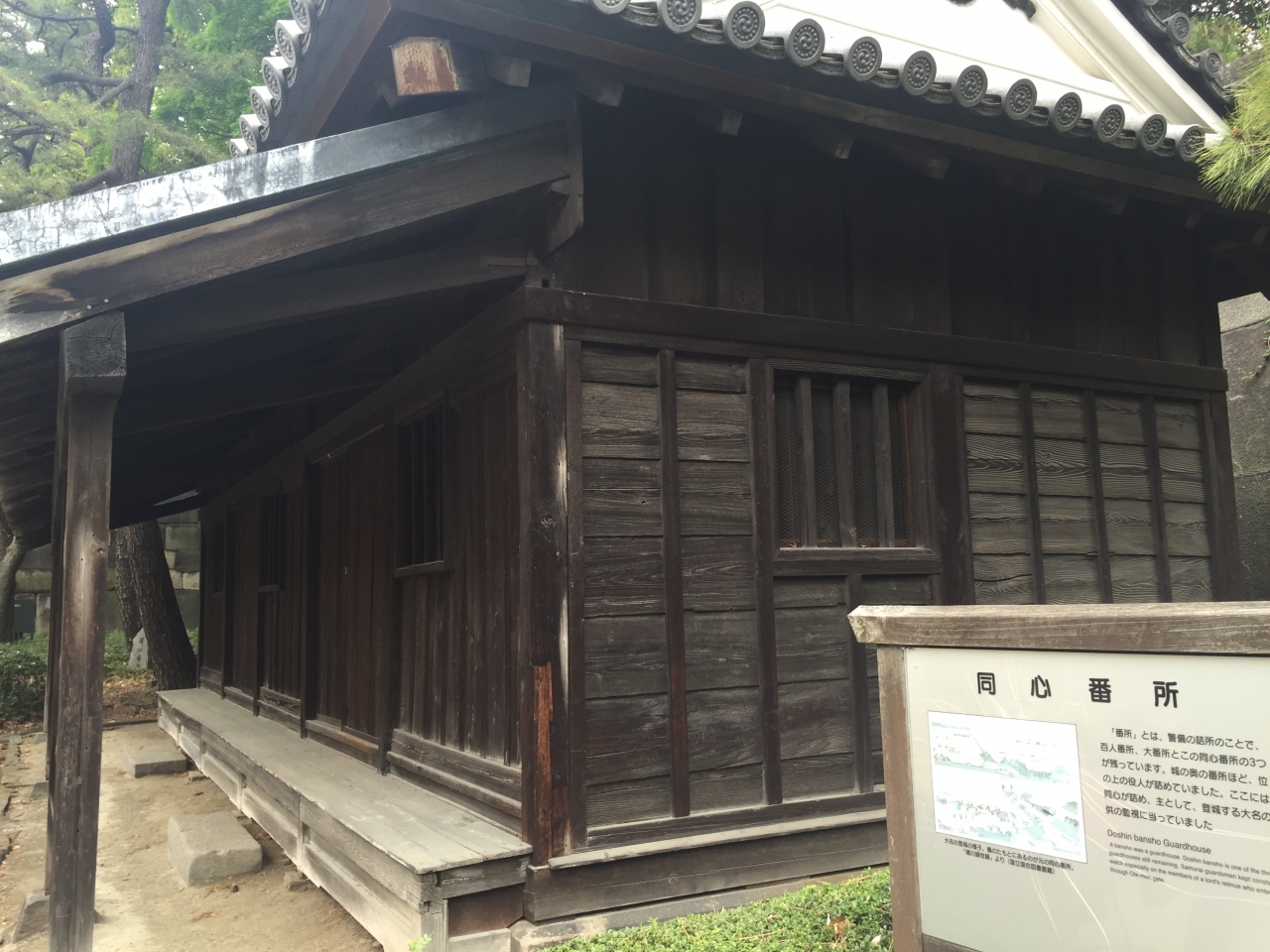皇居東御苑の敷地内にありました。番所というのは警備する人が詰めていた場所なのだそうで、同心番所、百人番所、大番所の3つが並んでいました。同心番所の建物は当時のものなのだそうです。この番所は3箇所の中で一番手前にあり、大名のおつきの人なども検問したのだそうです。