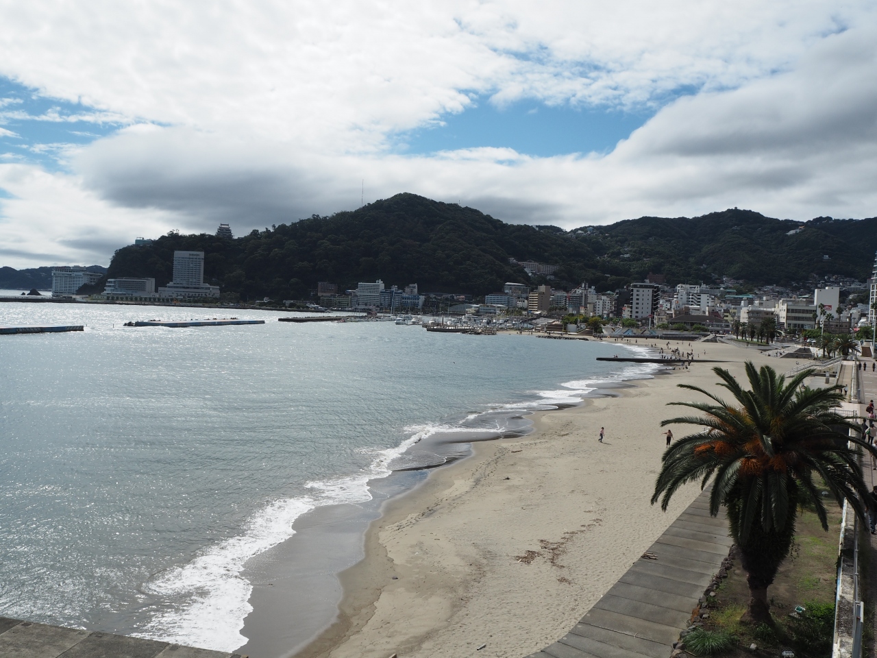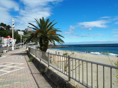 熱海サンビーチに沿って整備されている遊歩道です。訪れたのは10月だったので、お花の時期ではありませんでしたが、6月ころにはジャカランダという紫色の花がきれいに咲くそうです。花の季節ではなくてもヤシの木が植えられていて南国ムードあふれる雰囲気でした。