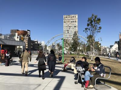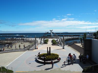熱海サンビーチの隣にある海の上につきだすように整備されているデッキです。熱海市は北イタリアのサンレモ市という市と姉妹都市なのだそうで、そのため地中海北部のリゾートをイメージしてつくられた広場なのだそうです。観光客が多くいました。