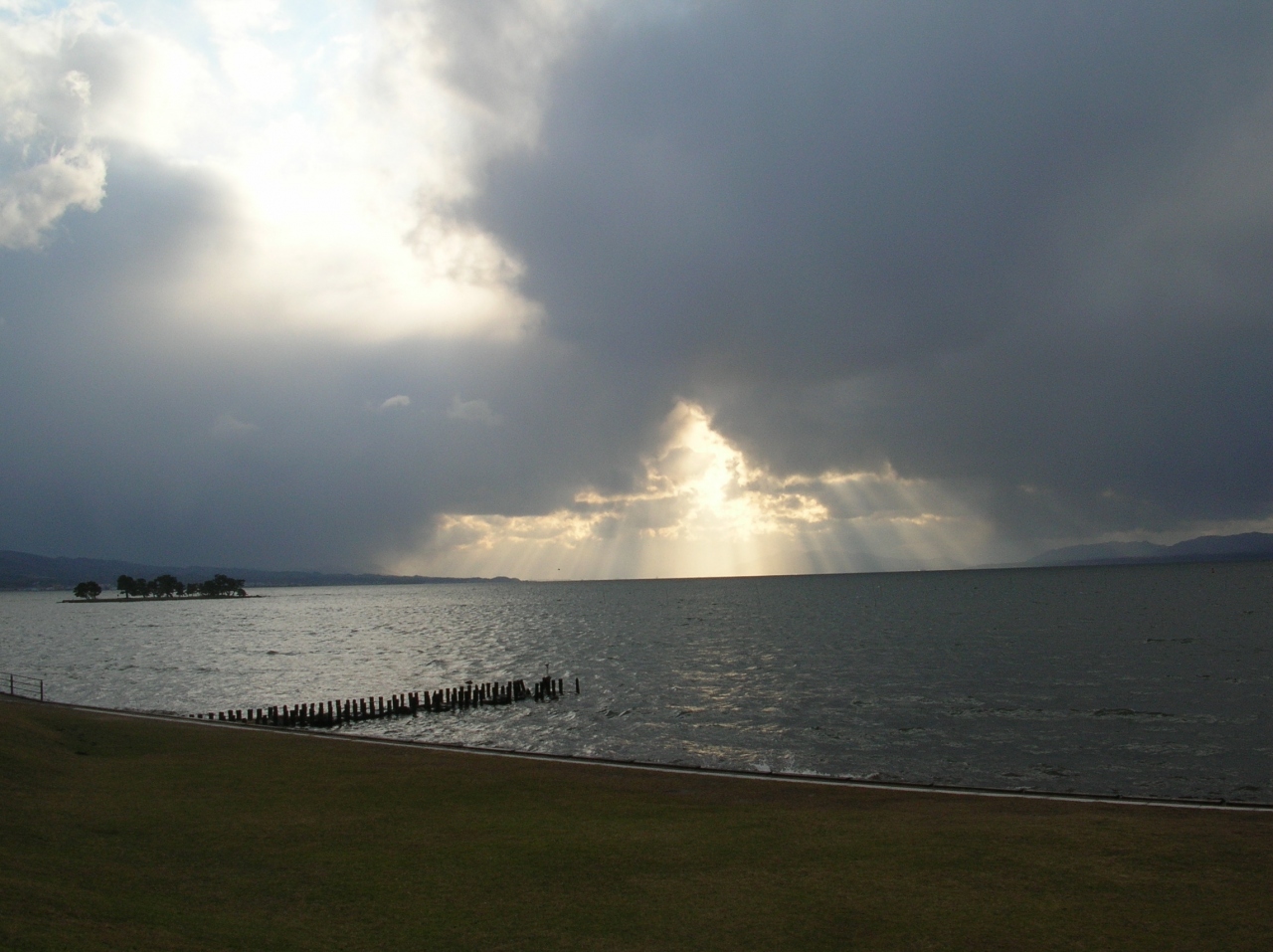 かなり大きな湖で、日本で7番目の大きさなのだそうです。こちらは湖ですが、少し塩分も含んでいる水なのだそうです。宍道湖は夕日の名所ときいていたので、夕方にあわせてきましたが、雲が多めできれいな夕日は見られませんでした。