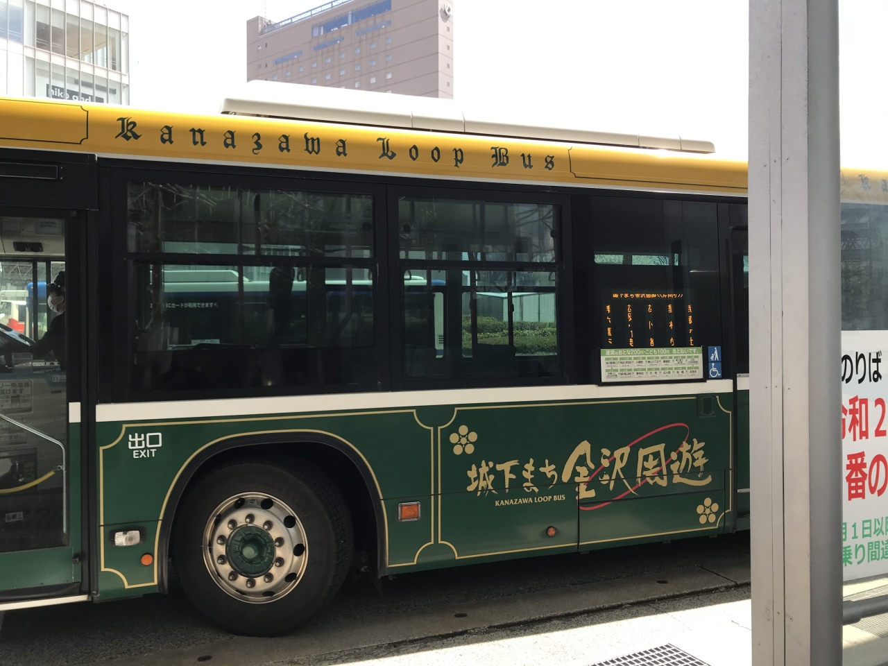 金沢の有名な観光スポットである兼六園や金沢城公園、ひがし茶屋街などはどれも金沢駅から少し離れているので、もてなしドームの下にあるバス乗り場から周遊バスを利用しました。バスを3回以上利用するのであれば1日乗車券がお得です。