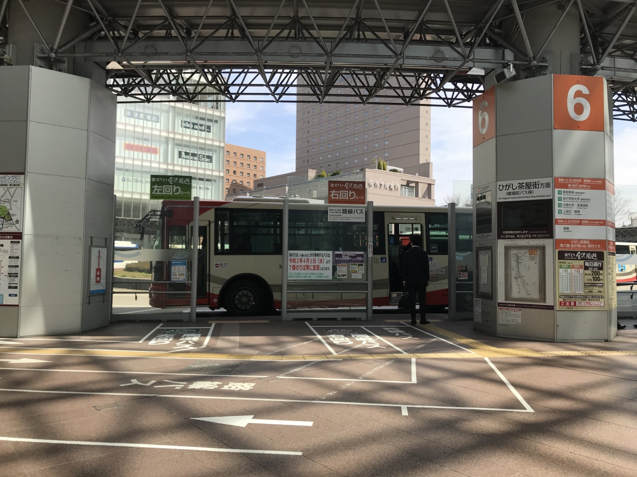 金沢駅の東口にあるもてなしドームの下がバスターミナルになっています。兼六園やひがし茶屋街などに向かうバスが出ていました。交通案内所もある他、係の方もバス停にたっていて、行先を言うとバスの場所を教えてくれました。