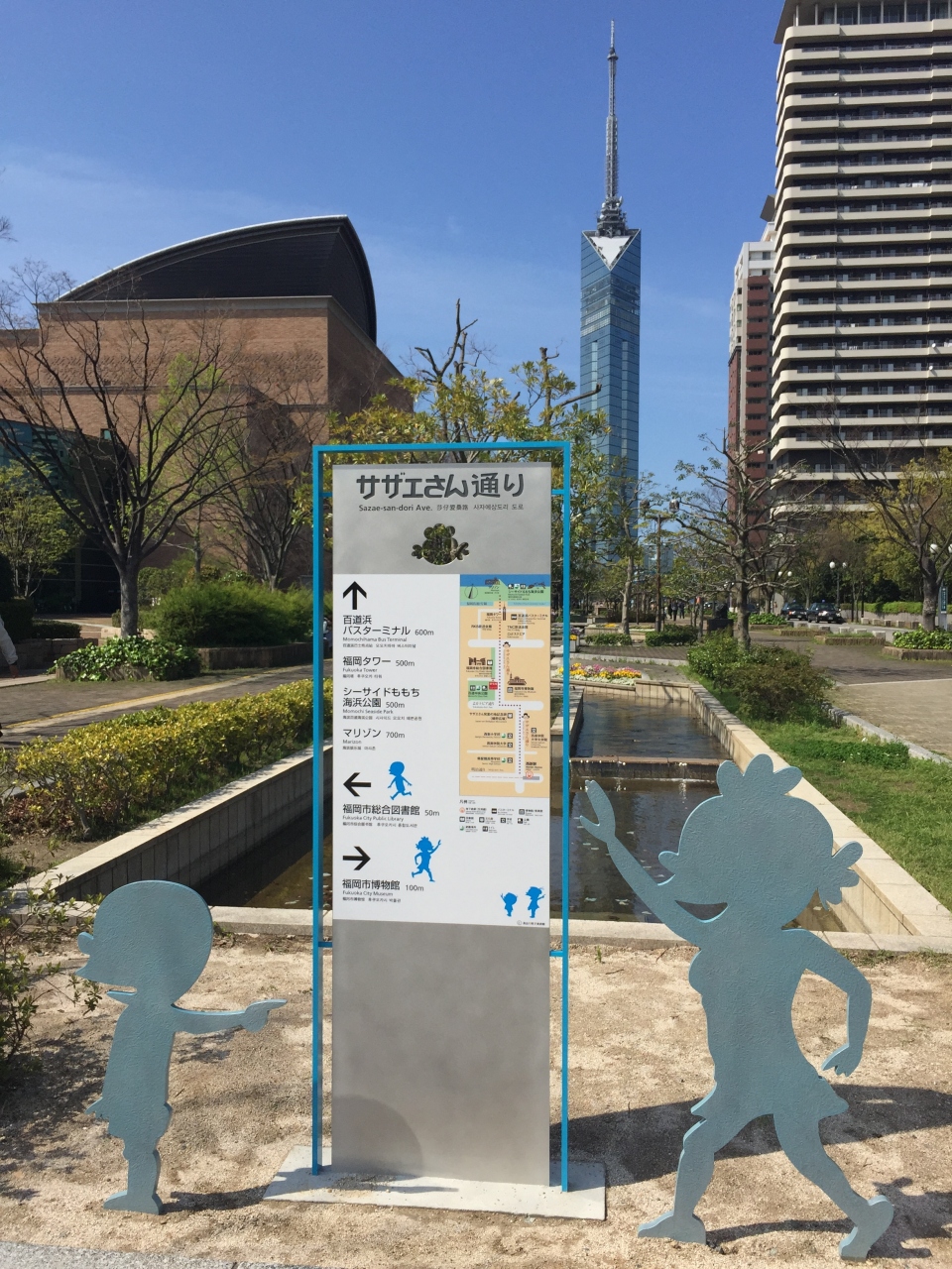 サザエさんは福岡で考案されたものなのだそうです。西新駅から福岡タワーに行く途中の道がサザエさん通りになっていました。ところどころにサザエさんファミリーのモチーフなどがあってかわいかったです。通りはきれいに整備されていました。
