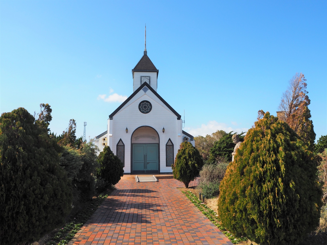 道の駅ローズマリー公園の敷地内にあるガーデンです。写真では教会のまわりにきれいにお花が植えられていて、きれいなガーデンを想像してきましたが、現在はお花などはほとんど植えられていなくて、ちょっと寂れた雰囲気のガーデンでした。