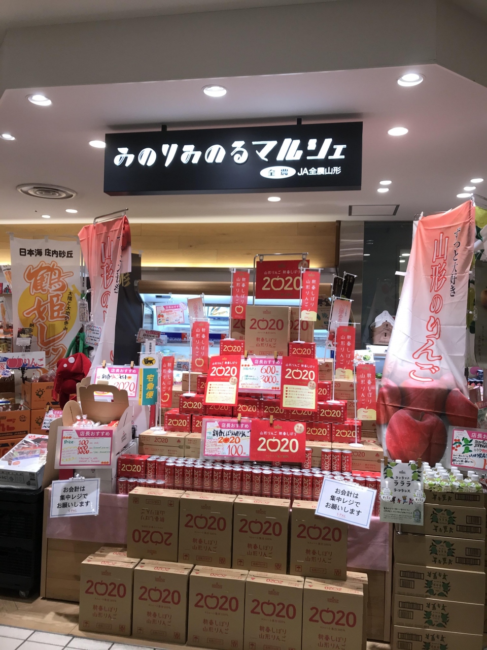 JR山形駅のエスパルの1階に入っているお店です。地元山形の特産品を扱うお店ということで、野菜やお米、果物などの商品が並んでいました。バス停のすぐ近くの場所にあるので、バスの待ち時間に立ち寄ることができます。