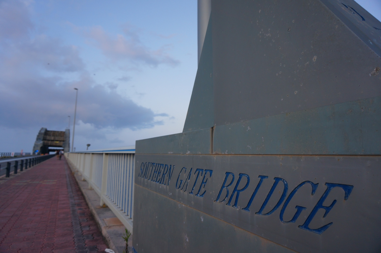 宿泊したホテルがサザンゲートブリッジのすぐ近くだったので、朝の散歩がてら朝日を見に訪れました。他に人の姿はなくて、とても静かな雰囲気の中、石垣島の街並みの向こうから上がってくる朝日を楽しむことができました。夜はライトアップもされるそうです。
