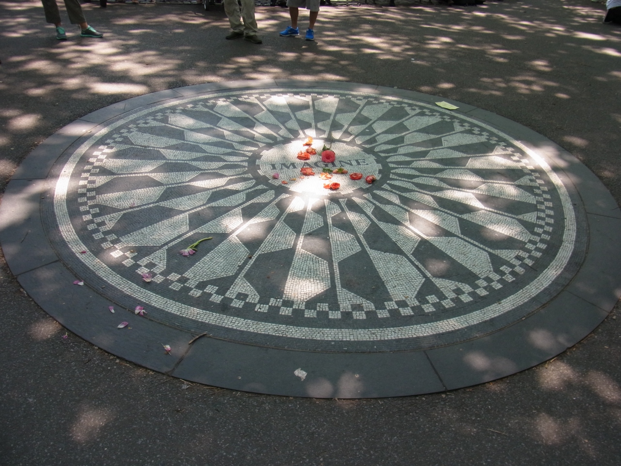 ニューヨークのセントラルパーク内にある、亡くなったジョンレノンにささげられた記念碑です。花がおかれており、多くの観光客が集まっていました。ジョンレノンが住んでいたダコタアパートの前あたりから公園に入ってすぐの場所にありました。