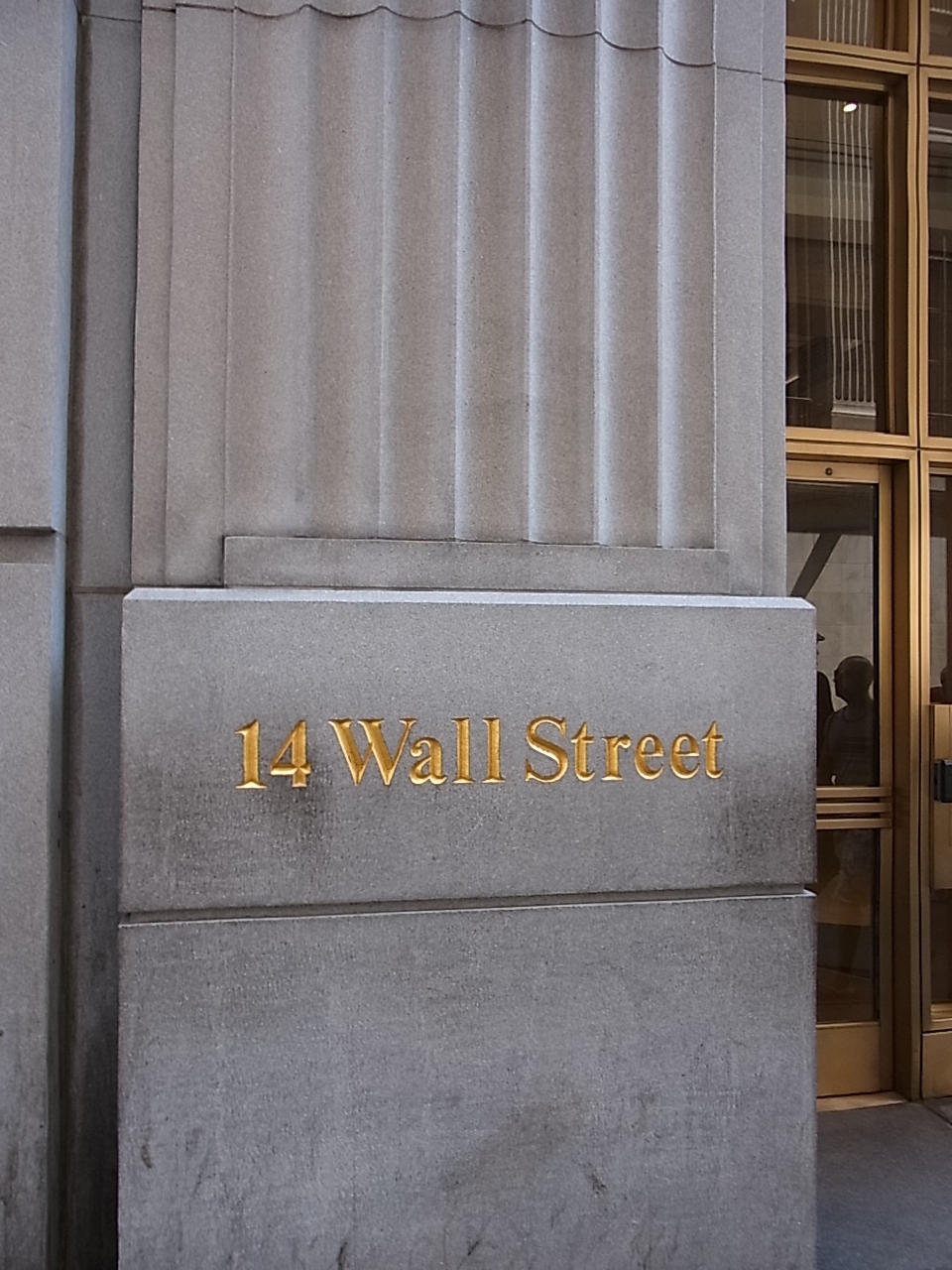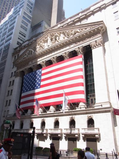 ニューヨークの金融の中心として有名なウォール街にあります。建物の外観もおしゃれな感じで、大きなアメリカの国旗が掲げられていました。訪れたのがちょうど週末だったため、このあたりは人通りも少なく閑散としていました。