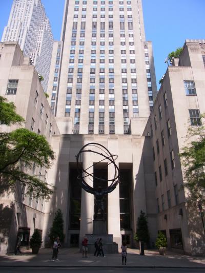 ニューヨークのマンハッタンにある高層ビル群です。中心となるGEビルの上には展望台もあるので、上からの景色を楽しむこともできます。GEビルの前には水が流れるプロムナードが整備されており、その先の金のプロメテウス像前が記念撮影ポイントになっていました。