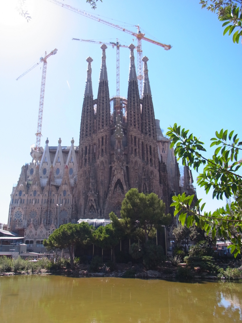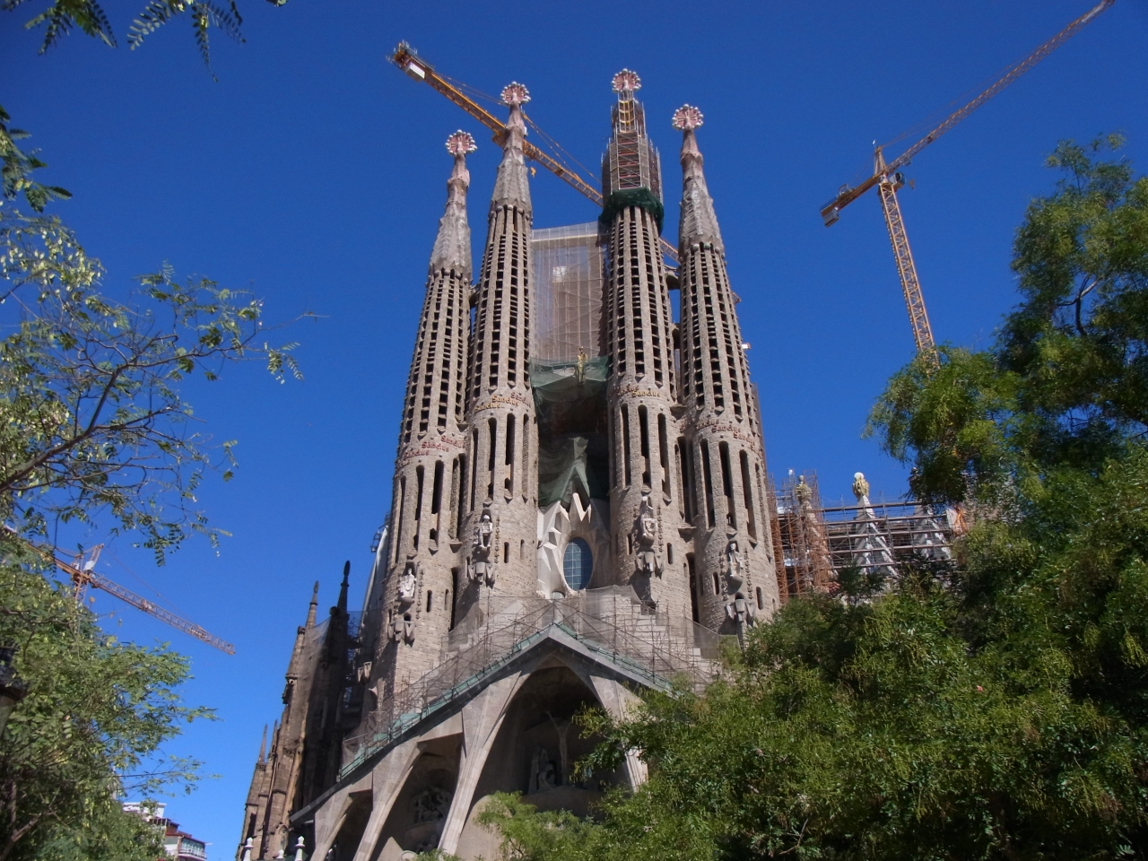 サグラダファミリアの前に広がる公園です。サグラダファミリアは両側に広場が広がっていますが、こちらは受難のファサード側に広がる公園です。サグラダファミリアには昼過ぎに訪れましたが、こちらの公園からはちょうど順光の時間できれいに写真撮影できました。