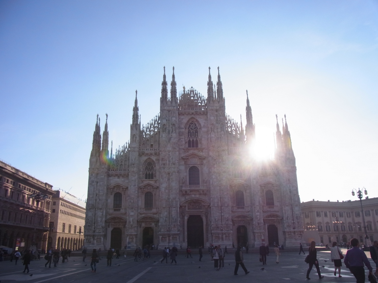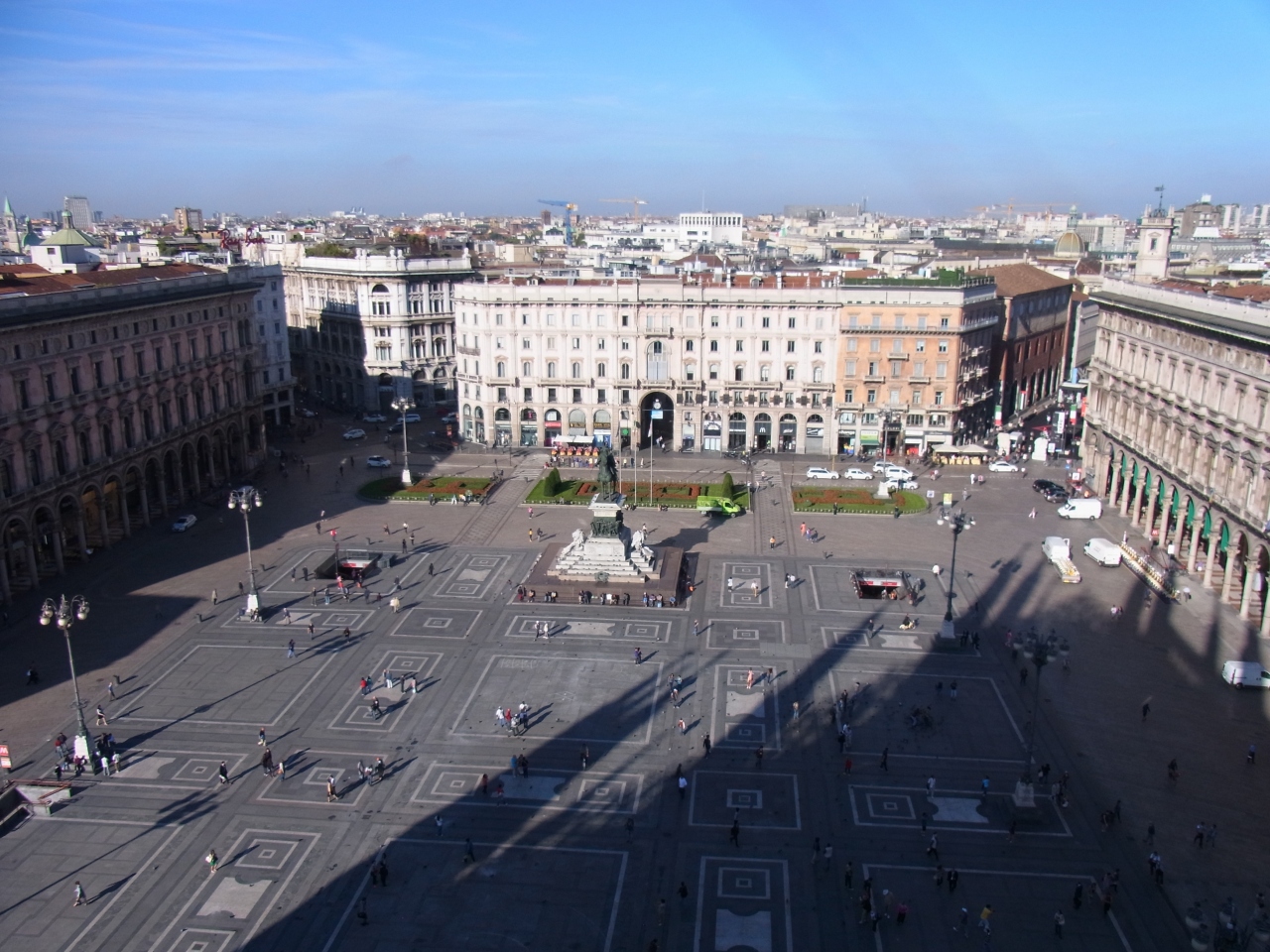 ミラノのメインの観光スポットのひとつであるドゥオーモの前に広がっている広場です。この広場自体かなり広々としていて、観光客も多く、みな記念撮影をしていました。午前中の早い時間に訪れたのですが、この広場からのドゥオーモはちょうど逆光になってしまっていたのが残念でした。