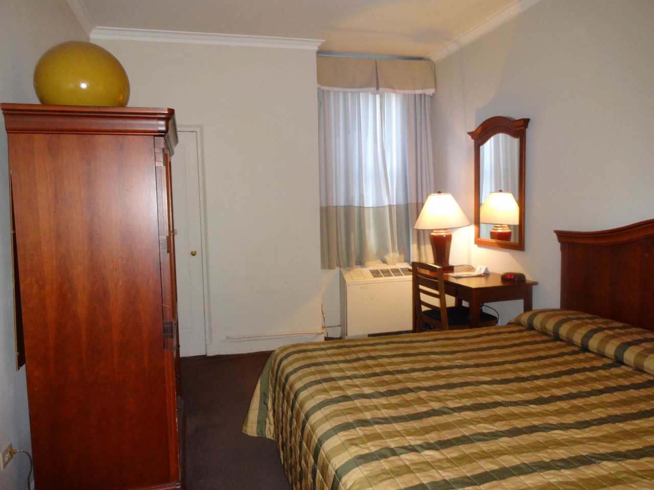 ニューヨークのマンハッタン地区にあり、安価なホテルのようですが、観光するのには最適の立地条件です。サービスが悪いと聞いていましたが、レストランや売店の人はフレンドリーに話しかけてきて、嫌な思いはしませんでした。ただ、ロビーは改装されて綺麗だけれど、客室は狭くて、壁にヒビが無数にあって老朽化しています。水周りのトラブルもあるらしく、運次第みたいです…。
