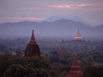 朝もやにけむるバガンの眺め。ミンガラーゼディパゴダからの眺望です。4:...