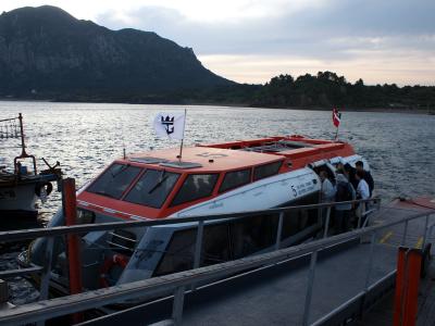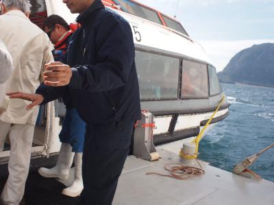 チェジュ島には、大きな船が入港できる港がないので海上で船に乗り換え、チ...