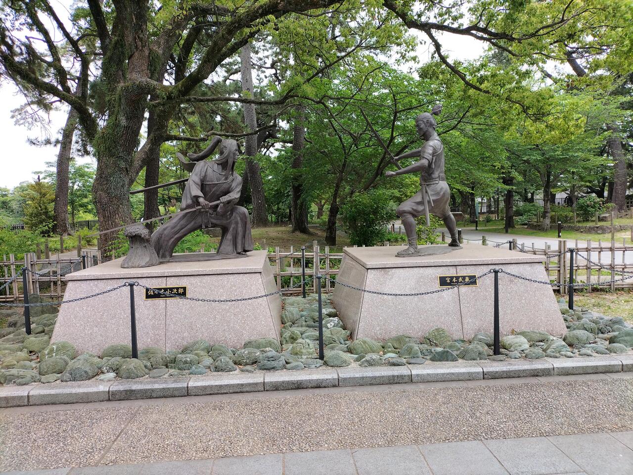 博多から鹿児島本線でひたすら西小倉駅(または小倉駅)をめざす。駅からはビル群が邪魔をして迷ったがNHKの裏に見つけました。西小倉駅から徒歩6分くらいらしい。写真でしか観ていませんでしたが、私のなかでは名城に値するデザイン。一度は観てみたく、博多から足を延ばしました。やはり外観が素晴らしい!城のそばには、武蔵、小次郎の巌流島の決闘の銅像もあります。期待を裏切らない見栄えでした。納得。