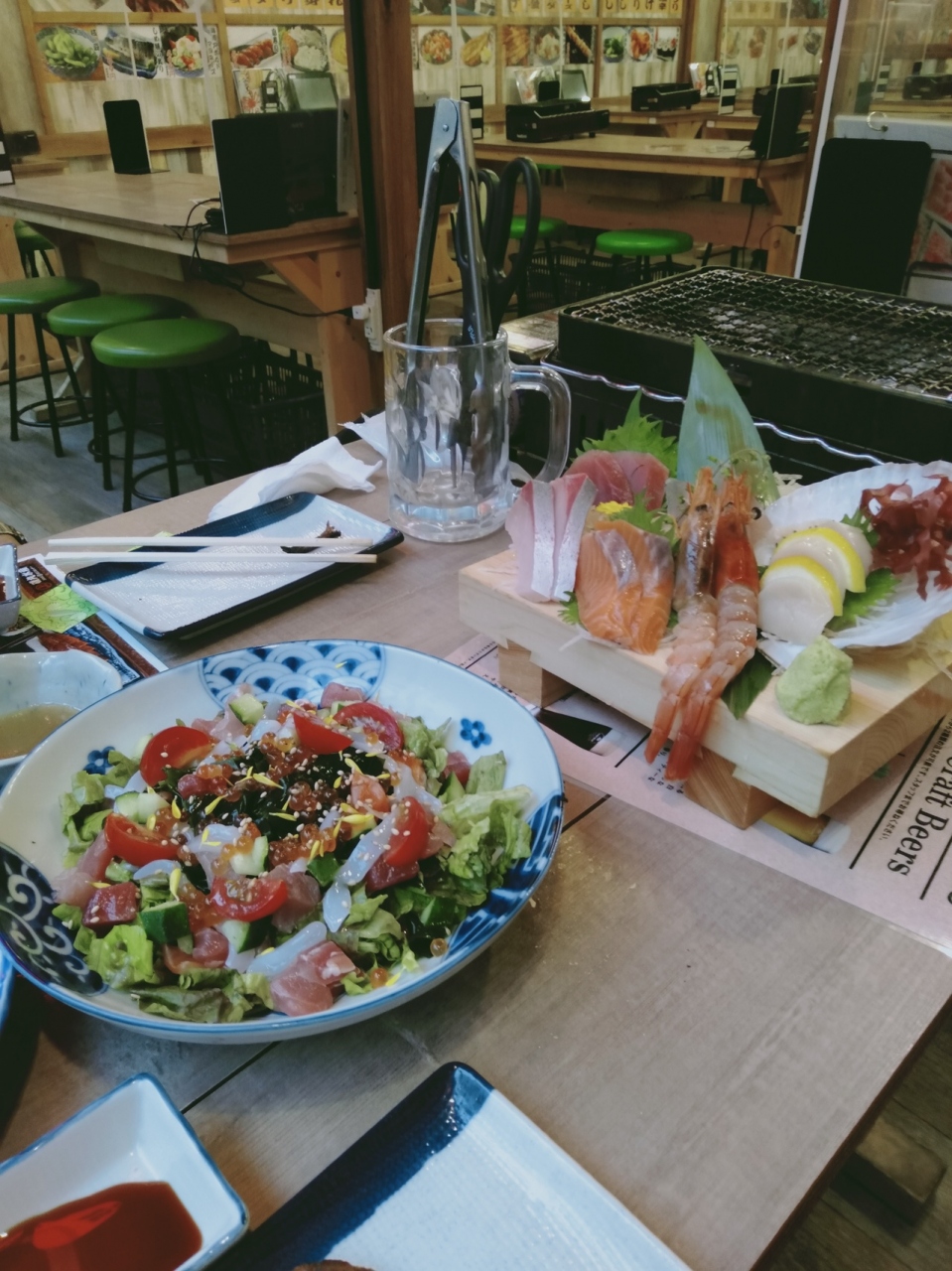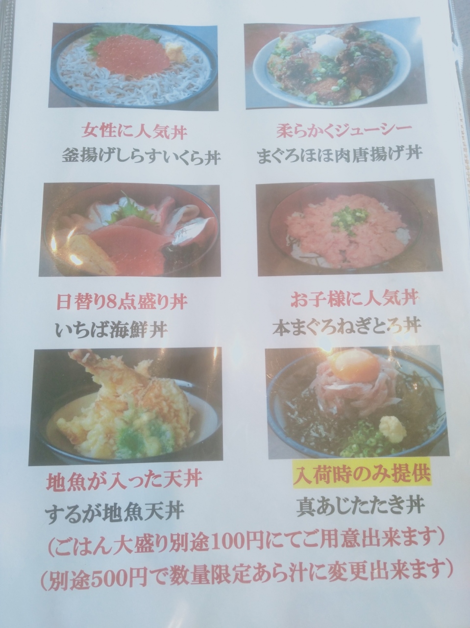 沼津漁港には様々なお店が林立していますが、一番奥の魚市場上(2階)の食堂がおすすめです。値段もちょっとお安くて今朝のセリで仕入れた魚介類を提供してくれます。海鮮丼とマグロほほ肉唐揚げ丼を家族で食べました。海鮮丼は、8種のセリで仕入れたネタでした。みんな満足です。無料と有料駐車場がありますが渋滞のタイミングでどちらかに必然的に決まってしまいます。