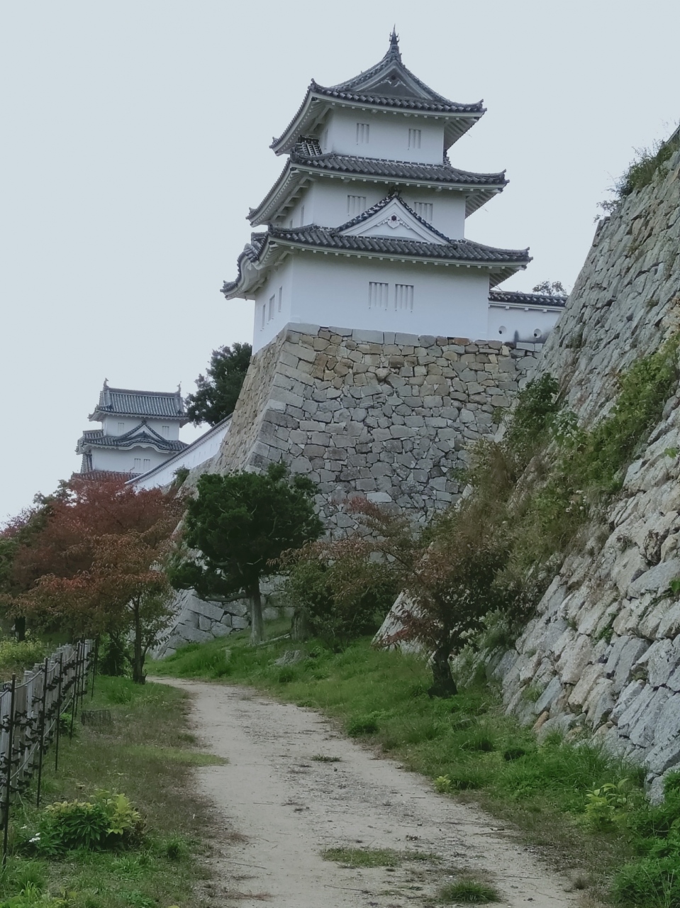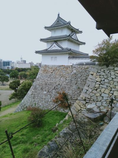 仕事ではいつも電車が停車するたびに恨めしく観てましたが、降りて見学してみました。高台で櫓の位置がかなり離れていることと本丸がないので多少物足りないかと思いましたが近づいてみると石垣はとても綺麗なこととアングルによってはなかなかです。