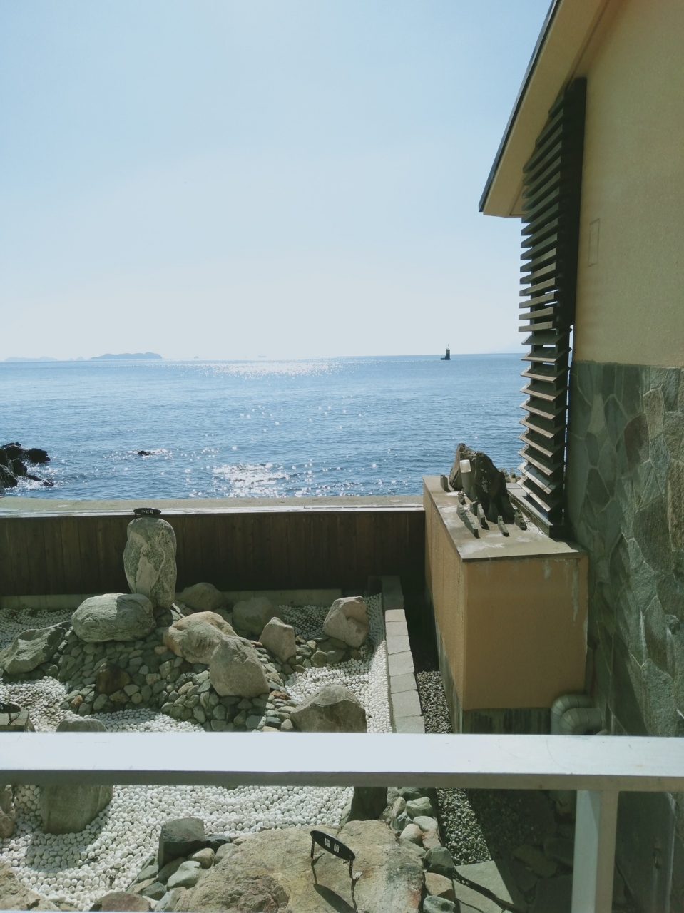 播州赤穂へ旅行計画したところネットで気づいて日帰り温泉に。昼食込みで6,500円ですが前日予約締切なので断念。温泉のみ。フロントでLINE登録すると100円引で1,700円です。あいにく当日は小さい方が男湯だったため豪華さは欠けていたらしいけど瀬戸内海と同化して癒されます。館内も非常にきれいです。ナトリウムが強いからか半透明の赤銅色って感じ。次回は1泊したいな~。