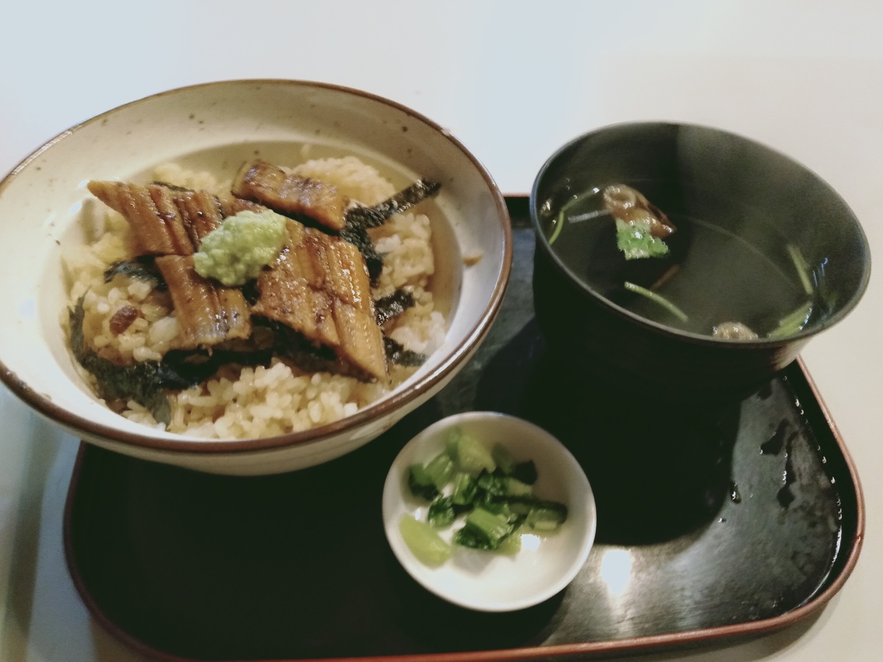 改修なった姫路城を観に行きランチをと思いネッツで検索し訪れてみました。平日なのに列ができていて近所の子供連れもいて、よくこのお値段で食べるんだとちょっとビックリしつつ期待が膨らんだ。お店が狭くレトロな感じでいいです。あなごわっぱがお薦めとの店員さんでした(2,200円税抜)がちょっと勇気と財布の事情であなごめしに。事前にオーダー取ってたのでほどよく運ばれて来ました。店内やお品書きに書かれている通りに召し上がります。わさび載せ、お吸い物かけ、美味しいですよ。関西からでしょうか、広島・厳島のより薄味でちょっと物足りないかなぁ。