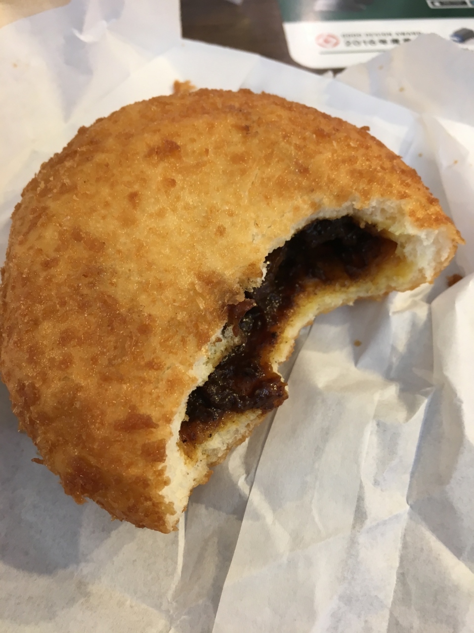 旅行途中にサービスエリアに立ち寄りました。いつも旅行客で芋を洗うような通路です。家族の好みでみんな別々をセレクトして食べました。私はカリーパンを選択。チキンを目指しましたが、品切れで討ち死に。やむを得ずビーフ味に。食感はサクサクでとてもイイんですがルーの味はイメージとちょっと違ったかな。カリーパウダーのかかった紅茶味ソフトクリームもありました。こちらは紅茶味がよかったがパウダーはいらない感じでした。中村屋のイメージはちょっとひねった方がいいかもね。