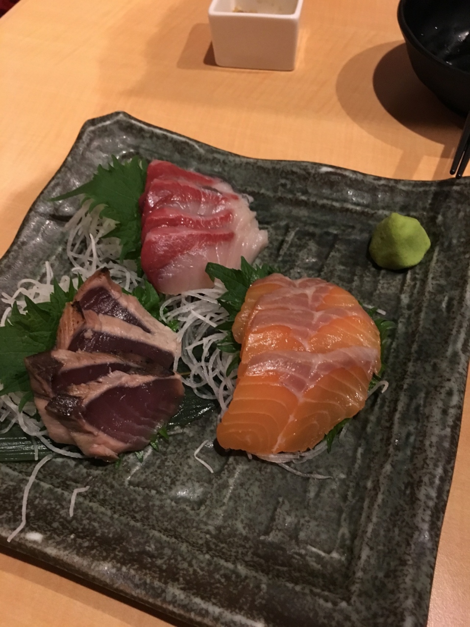 食べタイムクーポンを使って非常にコスバのいいコースを提供してもらいました。友達はビックリしてました。3種の前菜、刺身3点盛り、サラダ。