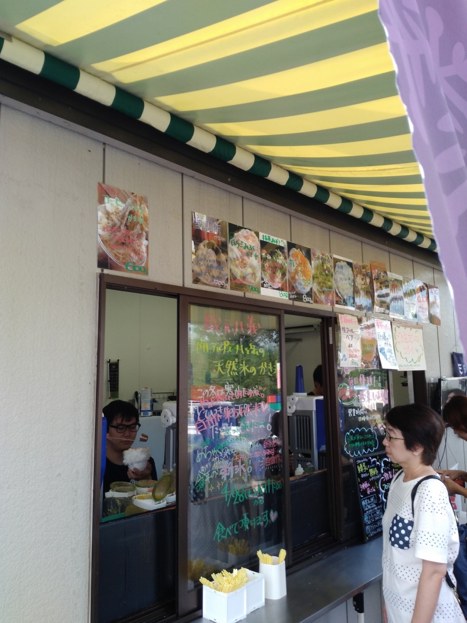家族旅行で娘の一押しで行きました。閉店(17時)の30分前に滑り込み。列になってましたので、品切れを警戒。車止めて走ってならびました。メニューが多く、選定に時間をかけてさて注文。家内が会計したんですが・・・・・できあがったのはイチゴ。そうなんです。氷切れでなくシロップ切れでイチゴ、マンゴーなど3品しか提供できな状態に。