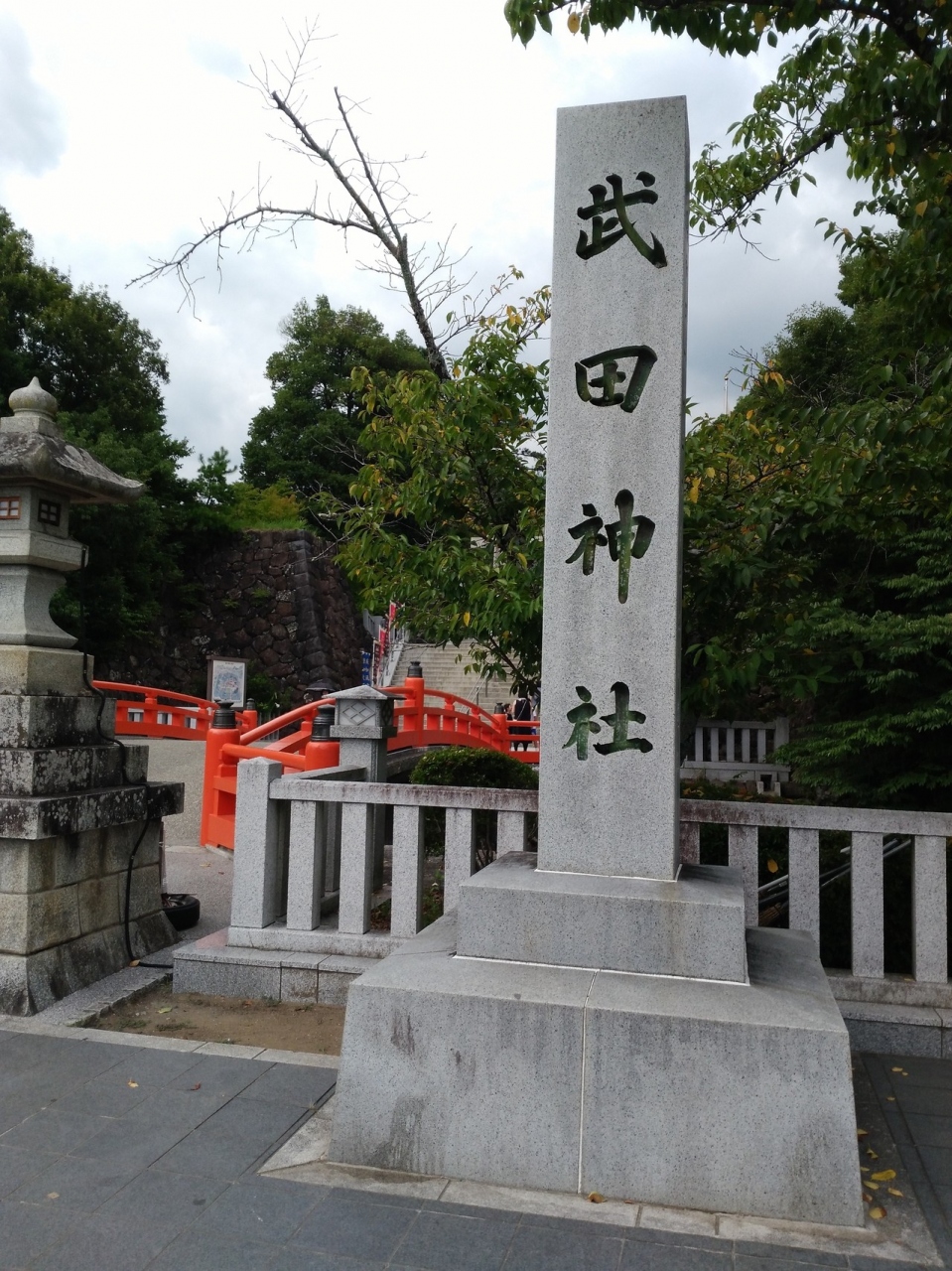 駅から車ですぐです。歩くとだらだらと登り坂で暑いとちょっとへばるかも。信玄の館跡に建ってます。境内は広々としていていい感じです。左側に新しく舞台が完成して新たな名所になってます。子供たちは学業、仕事で無敵の信玄にあやかるべくしっかり祈ってました。なかなか立派です。