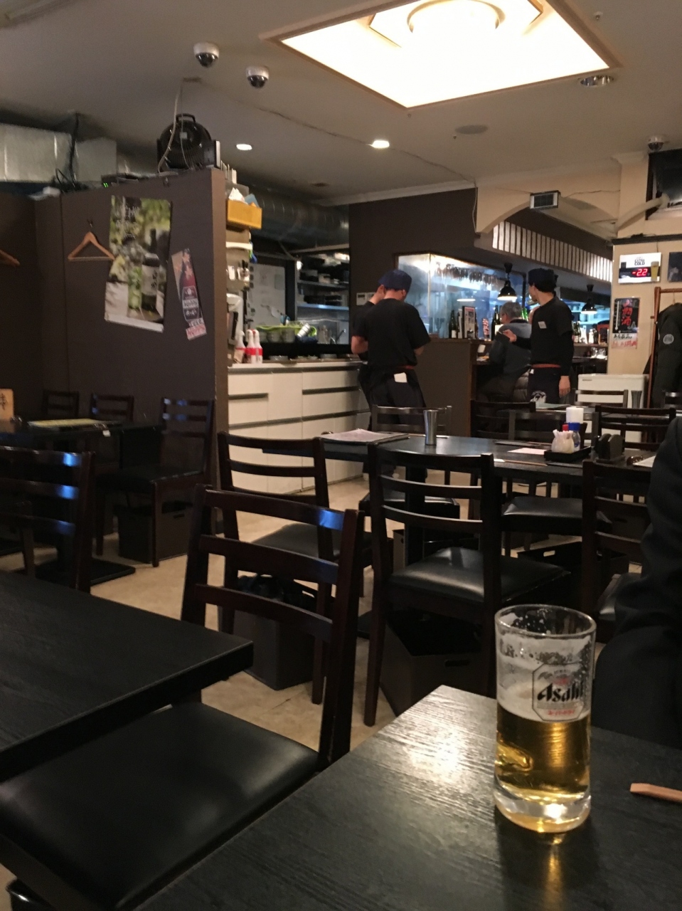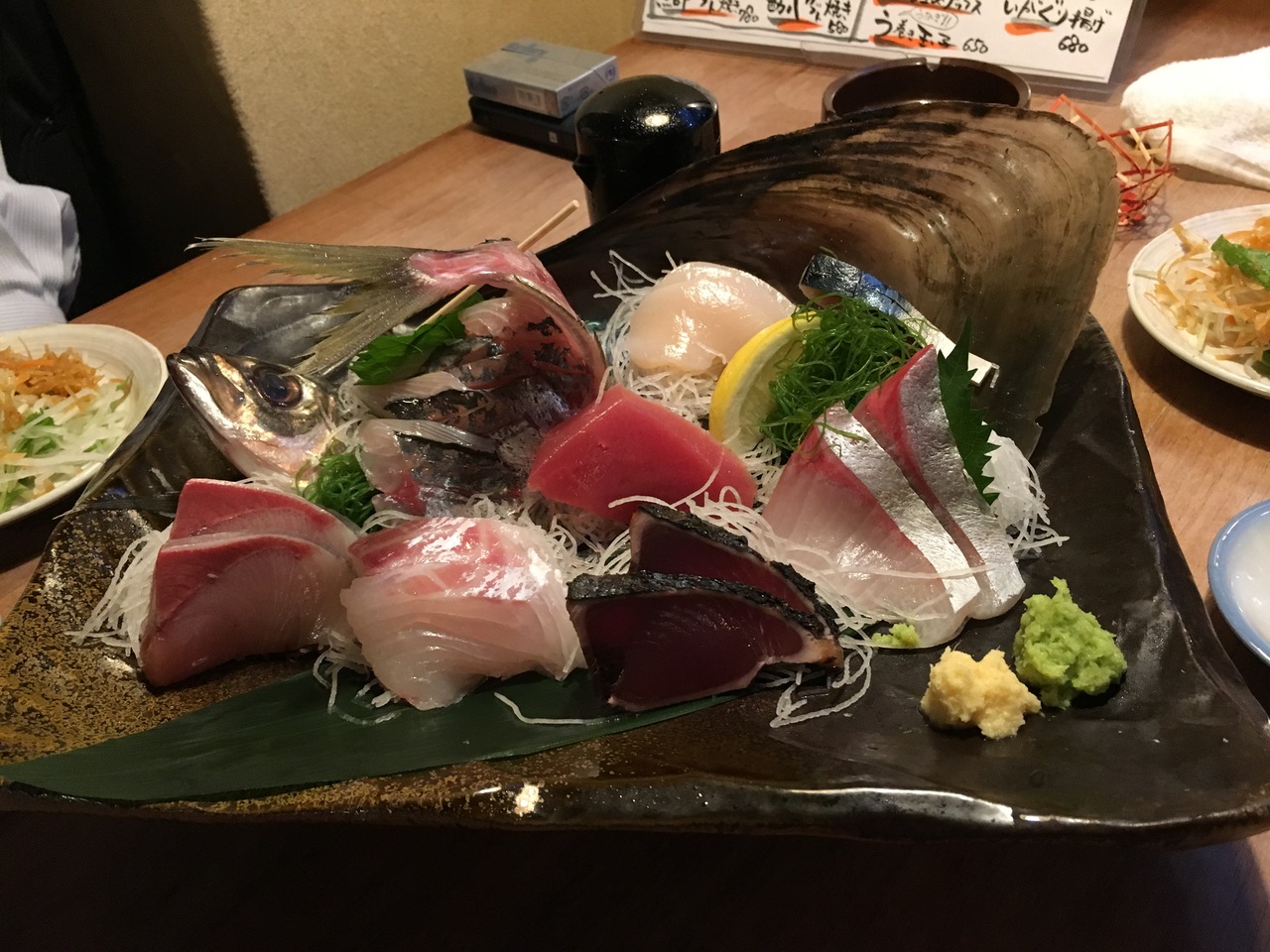 ちょっと友達との会合に別の友達に薦められて下見に行きました。以前は、風紀があまりよろしくないエリアだったんですが改善されたと聴いて足を延ばしました。店内はこじんまりしてますが、店員さんがその割に多めで対応がイイです。新鮮さで勝負するお店のようで店員さんが今日のおすすめを語ってくれます。18時に入ったんですがお開きの時間には満席でした。外国人も多く来店するバイリンガルなお店だそうです。写真は2人前の刺身盛り合わせです。新鮮で美味しくて1,850円は満足でした。