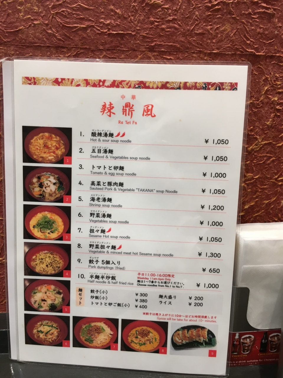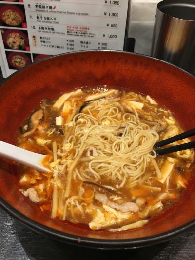 酸辣湯麺と言えば、この店ですかね。かなりのピリ辛(唐辛子が強い)です。オーダーして10分とかからず届きました。とろみが強く熱いので気をつけて下さい。火傷します。とろみのために最初は麺を引き上げずらく、滑り落ちるとスープが飛び散りますので要注意です。注意点ばかりコメントしましたが、細麺で小さく切った豆腐、細切りのタケノコなどが入っていて美味しいです。私、胃腸弱いのでちょっともたれました。他に担々麺などあります。昼間はミニ餃子やミニ炒飯とセットもお薦めですね。お得感ありそうです。