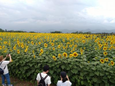 家内のいちおしで行きました。到着してびっくり!畑一面のひまわり、ひまわり・・・インスタ映えです。背丈が高く大きくて、写真イッパイ撮りました。ひまわりソフトクリーム、近隣にブルーベリー摘みもあり、ブルーベリーソフトも。ミツバチがいっぱいなのでかまったりしないようにね。刺されないか心配でした。