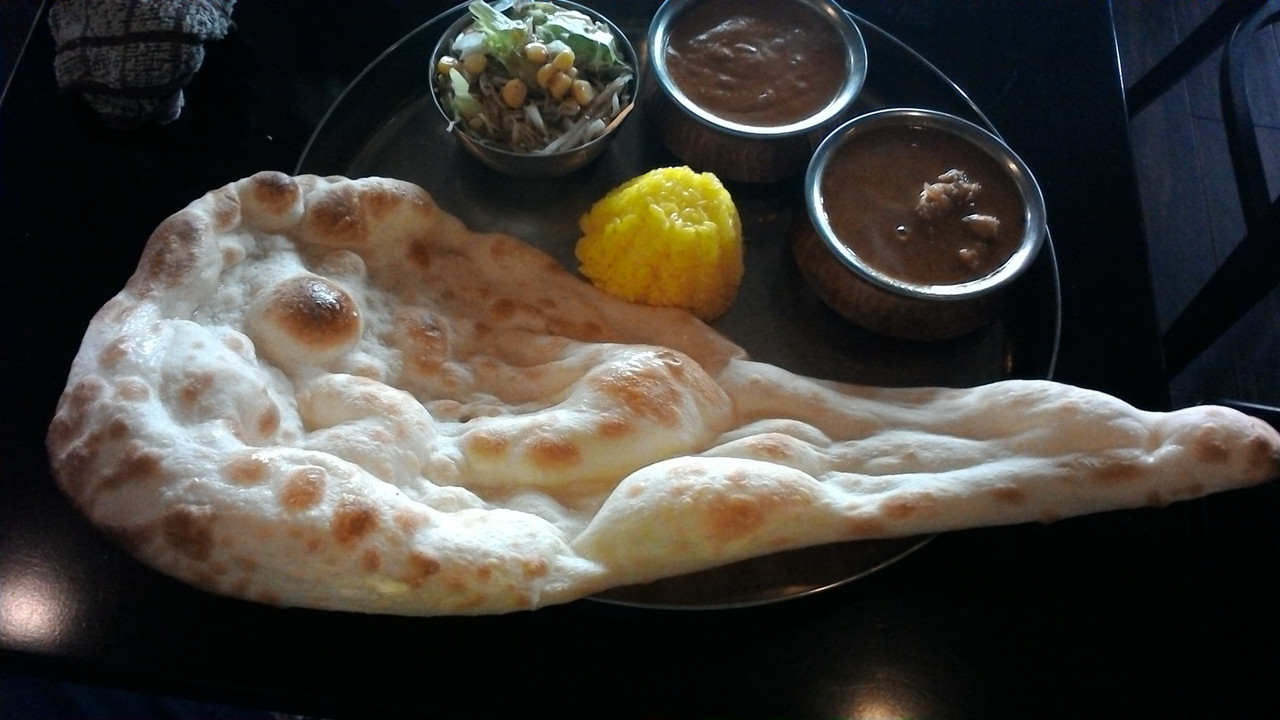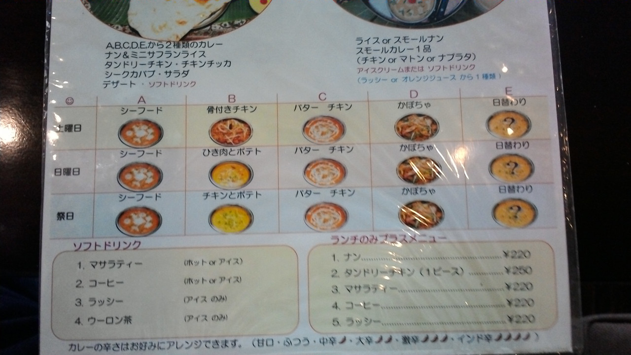 地域の情報誌にもよく載っているお店です。出来立てのナンは絶品です。訪れた日には、お母さんと小学生で、楽しそうに食べていました。また道路工事の誘導員風の方もひとりでランチしていました。祭日でしたので、シーフードと***を選んでランチ(1,200円)ドリンク付になります。そこそこのコストですかね。十日市場駅から徒歩2分のダイエーの隣です。次回はバターチキンを食べたいな。