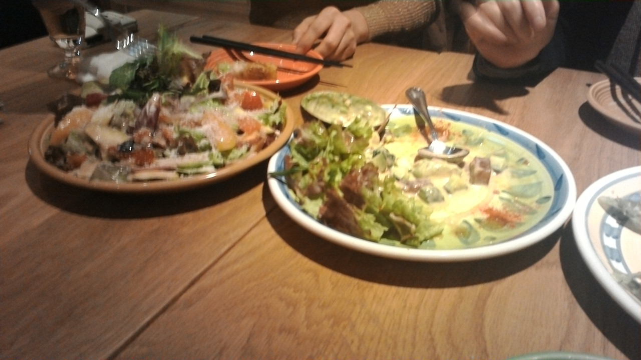 友達と8時すぎに入店してお酒を入れて食事しました。ヘルシーなメニューを堪能。ハウスワインも美味しかったです。ただ、楽しみにしていたピザや人気のメニューは売切れで残念でしたが、一様にみんな美味しかったので満足しました。次回はピザ食べたいです。