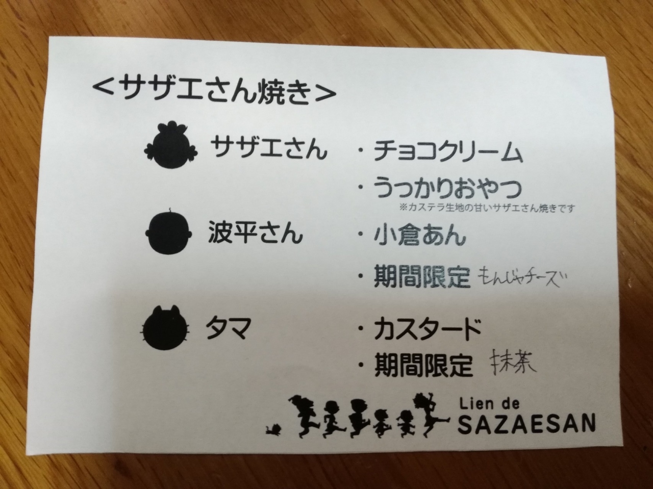 長谷川町子美術館の道すがらにあります。人形焼きっぽい。ふっくらしていてイイ感じ。外形は、サザエさん、波平、タマの3種。味は期間限定2種を入れて6種。今日は、もんじゃチーズと抹茶クリームでした。ファンにはたまらないね~。