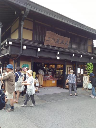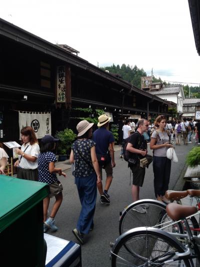 大学時代の夏休み旅行の定番だった飛騨高山。37年前と比べてどうかなーと思いましたが賑わいは一之町など上三之町以外にも拡散してました。スゴイです。町並みも綺麗に整備されていました。ちゃんと集客を狙った飽きられない出店など観光協会?町ぐるみで工夫をしているんだなーと感心しました。以前には飛騨牛の握り寿司、串、コロッケなどはさすがになかったなー。ホントに賑わってましたよ。37年前は覚えていませんが、今回は周辺の交通渋滞も激しかったね。