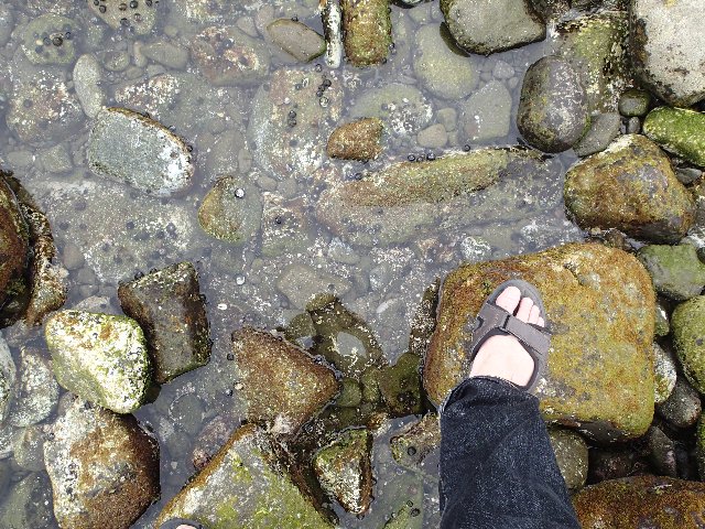 岩の隙間にはたくさんの小魚とヤドカリがいました。