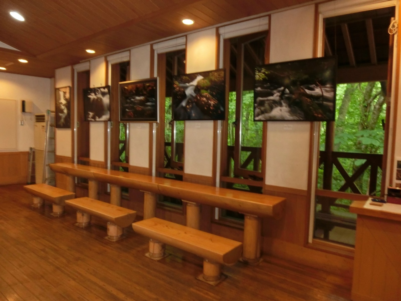 待合所のベンチは全て木製で、ハート型のベンチや木でできた「八幡駒」のオブジェもあり、なかなか凝っています。
