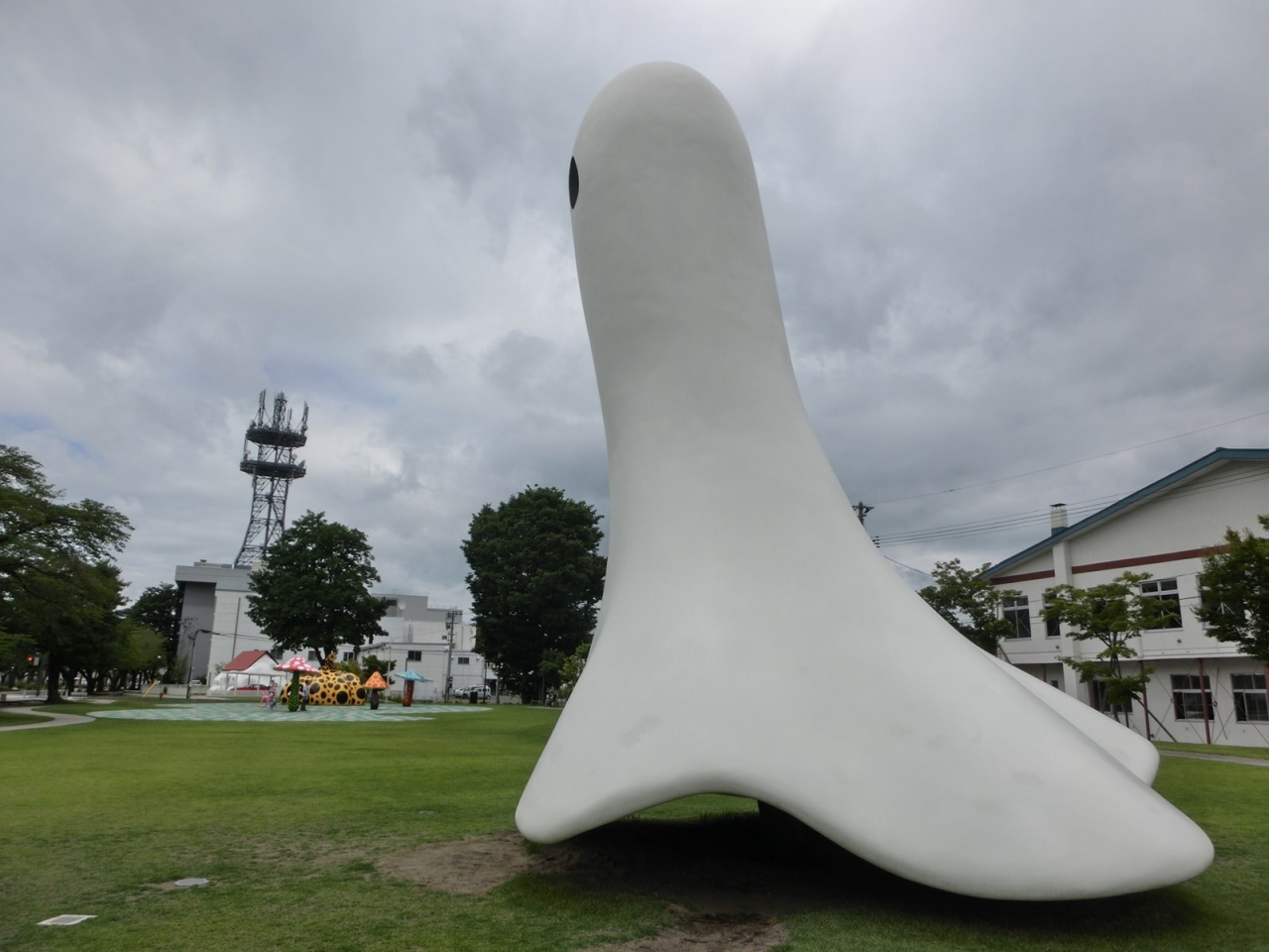 広い芝生のある公園にもなっていて、車に乗りつかれて来たお子さんがちょっと走りまわって、ストレス解消にもなると思います。