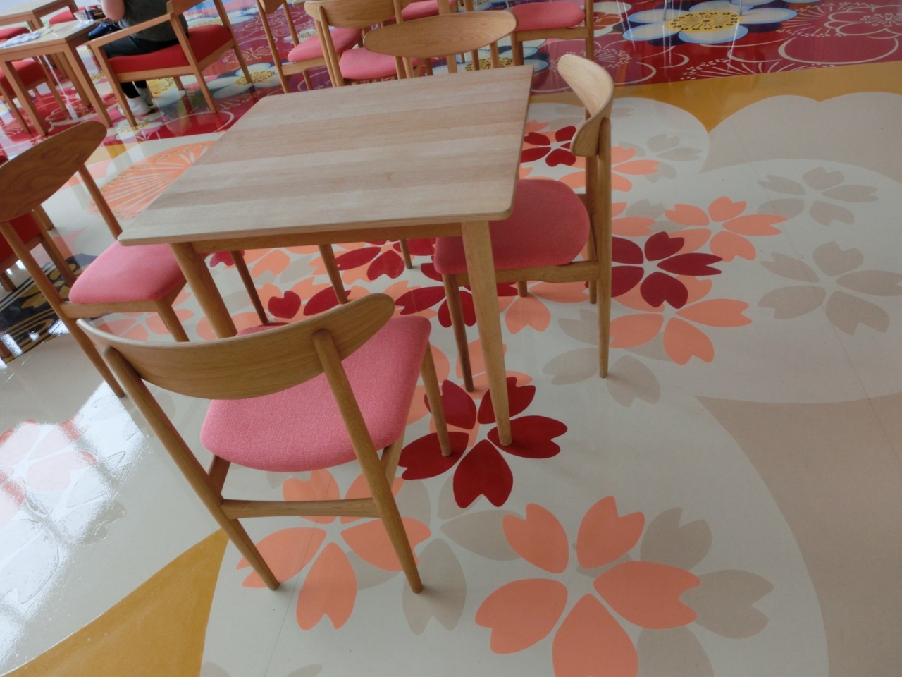 その床のウメやサクラの花の柄も見ていて楽しいです。