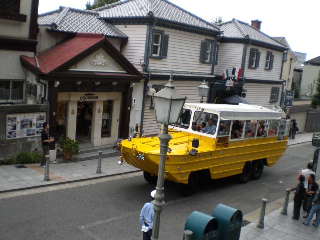 異人館が並ぶ北野通りに、水陸両用の船「スプラッシュ神戸」が走ります。