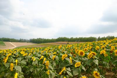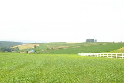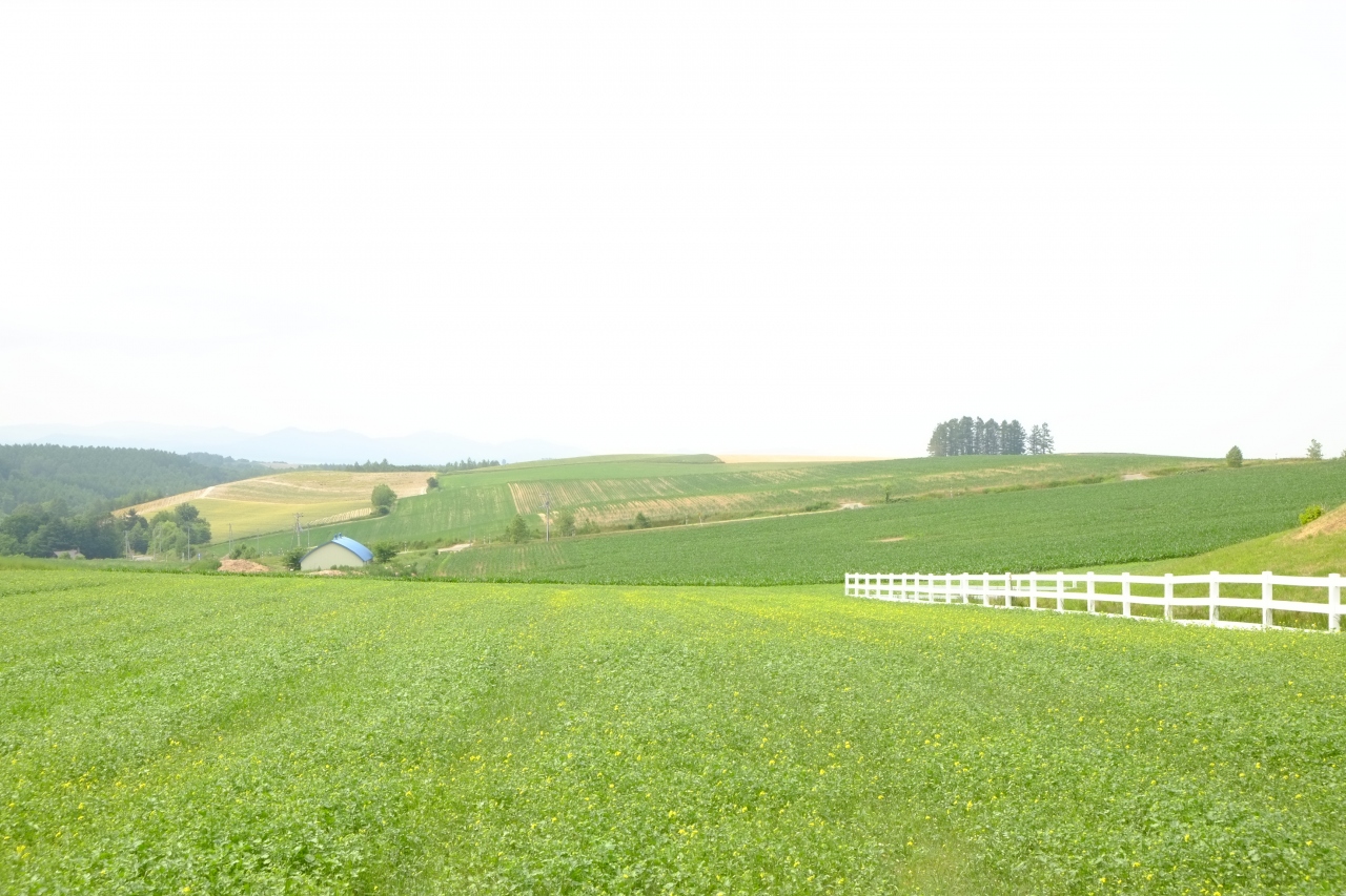 宿の前にはジャガ芋畑が広がっていて白い花が満開でした。目の前には美瑛の丘が広がっています。
