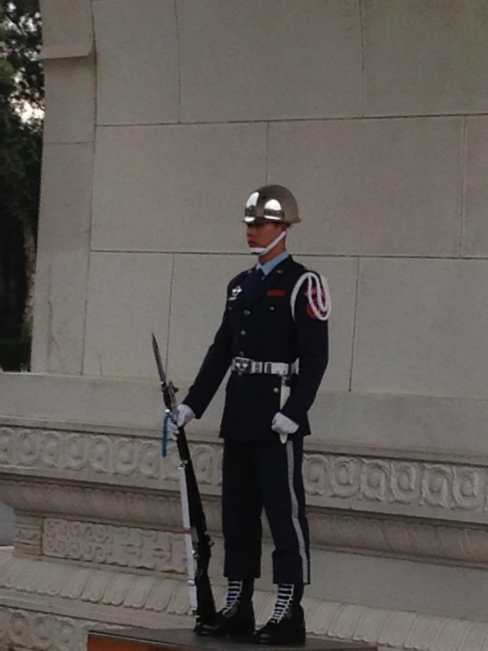 ガイドさんの話しでは、門の2階部分に衛兵さんの休憩所があり、時間になると休憩所から7名交代要員が出てくるそうです。